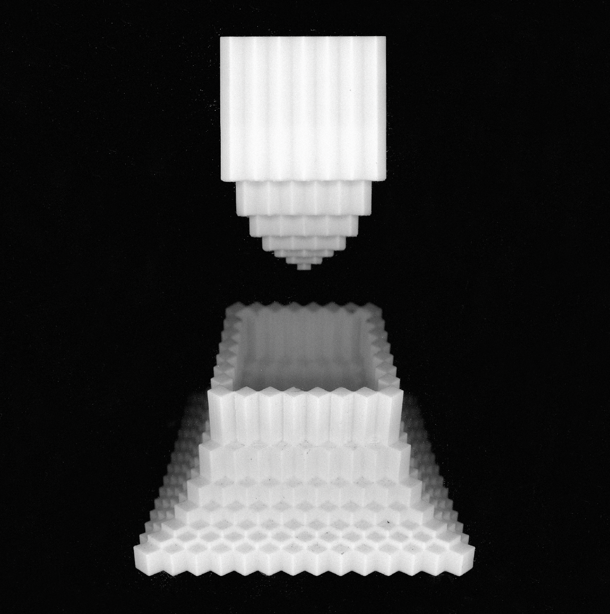 Inspired by a dream I had. This project was an attempt to create something that had the potential to feel organic while only using extruded squares. Its dimensions were inspired by numbers found in nature.